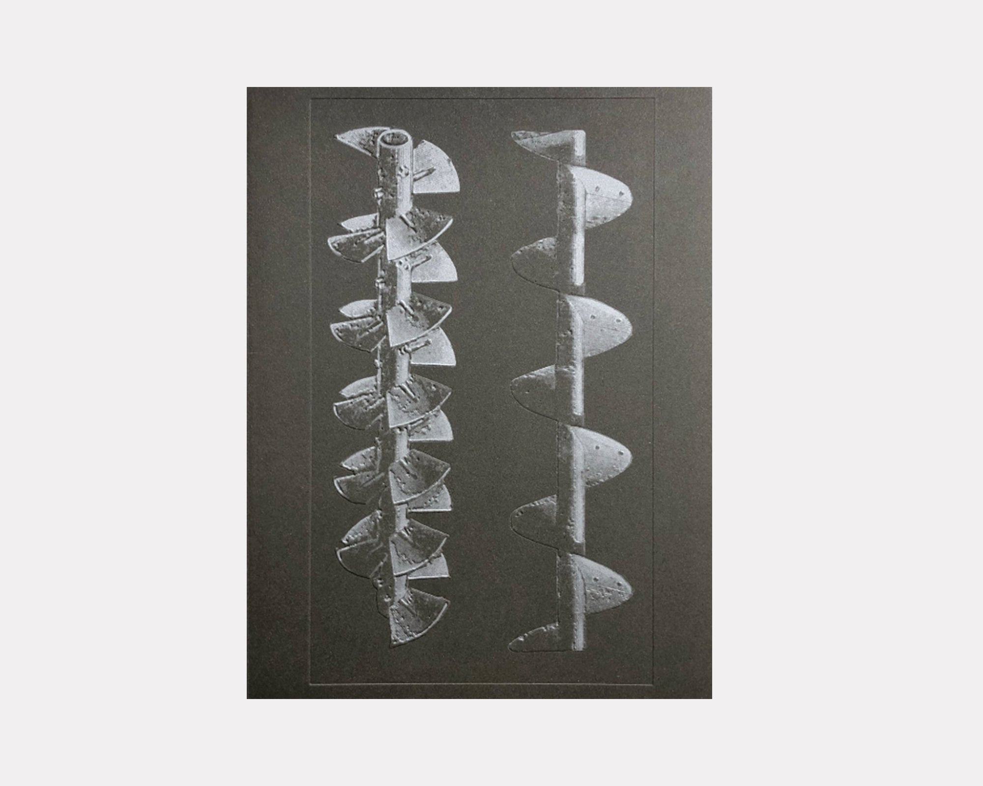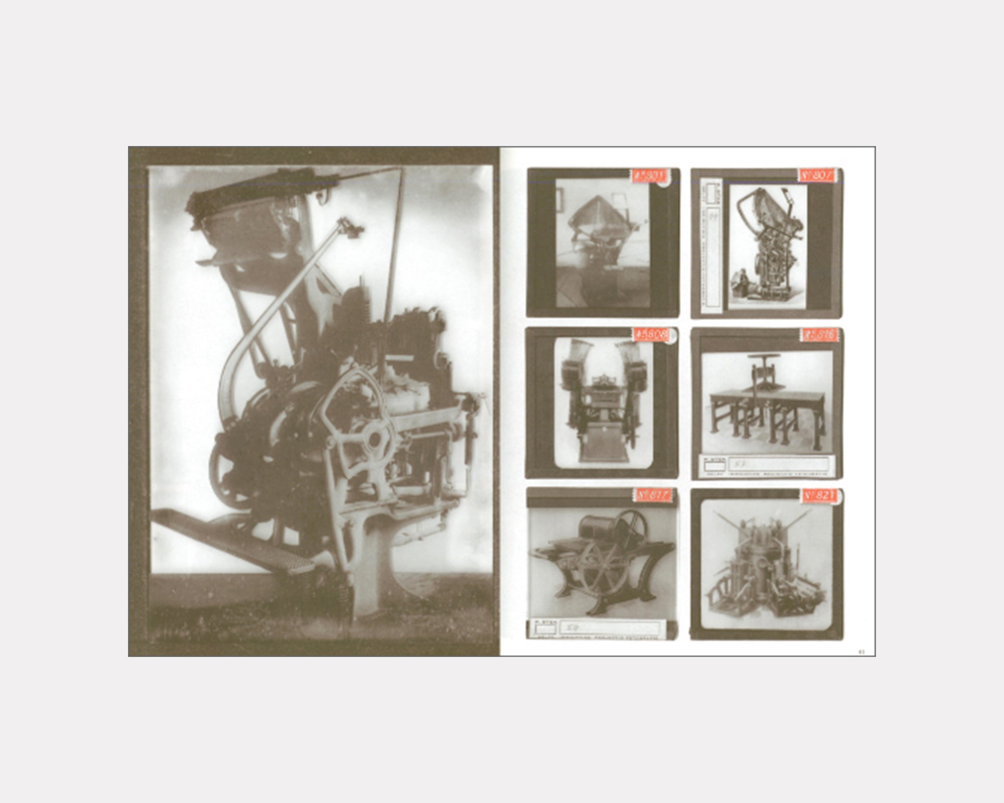 ‘La Nonpareille’ expands on Batia Suter’s site-specific installation at TU Delft, in which she engaged with an archive of glass slides from its library. Originally used between 1900 and 1960 for lectures in Mechanical Technology, these visibly worn plates document machines, industrial materials, and production processes during a period of increasing mechanisation. Suter reworks the material into a visual reflection on the entanglement of humans and machines – and how technology reshapes perception, labour, and everyday life. Many compositions in the book consist of layered montages, where multiple images are overlaid to create new, morphed forms and associations.
