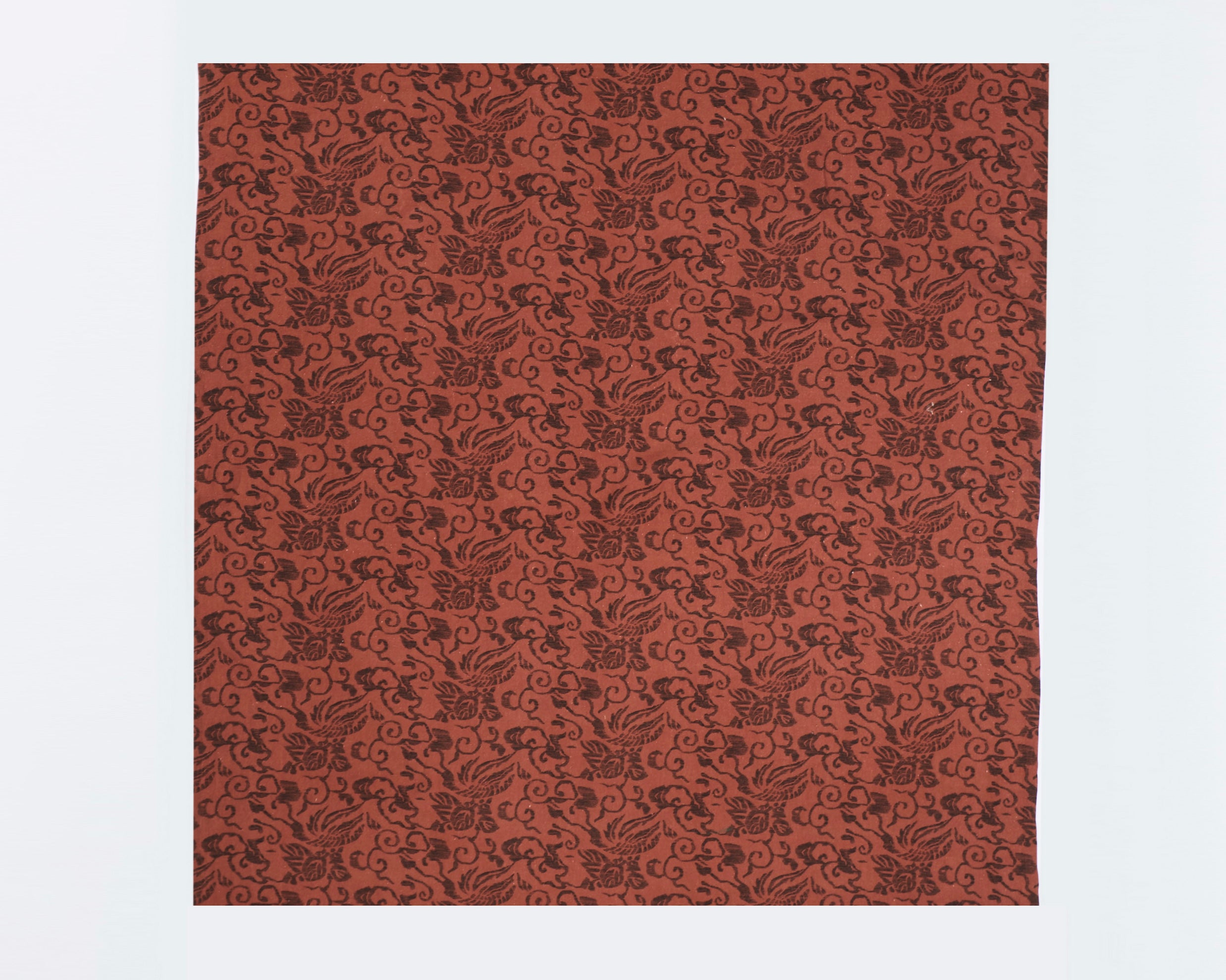 Echoing the imperfect art of etched prints, the Marianne design incorporates fine lines of soft brown against a rust-orange backdrop.