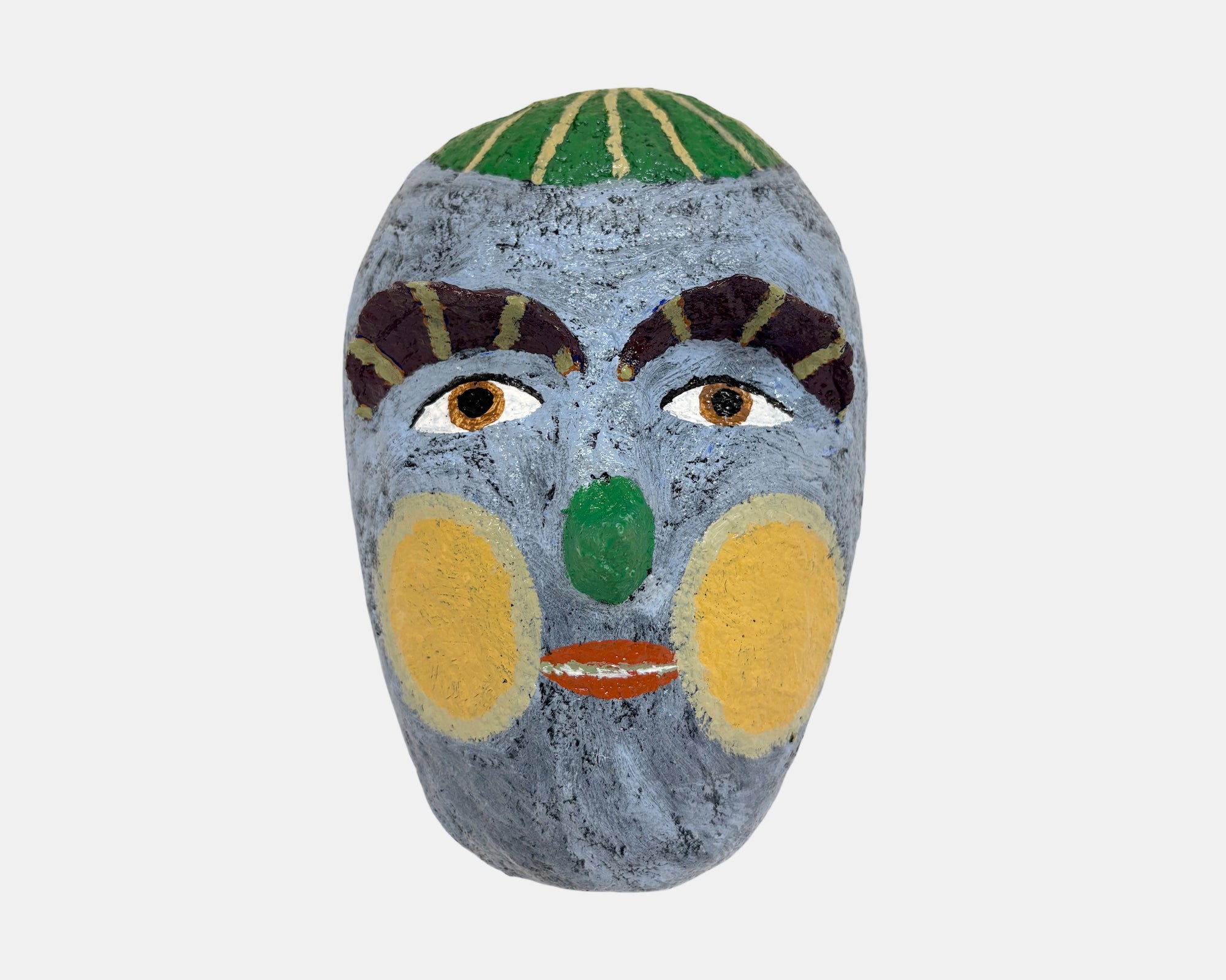 Each individual mask is hand-formed using papier-maché techniques and hand painted, where each is one-of-a-kind.